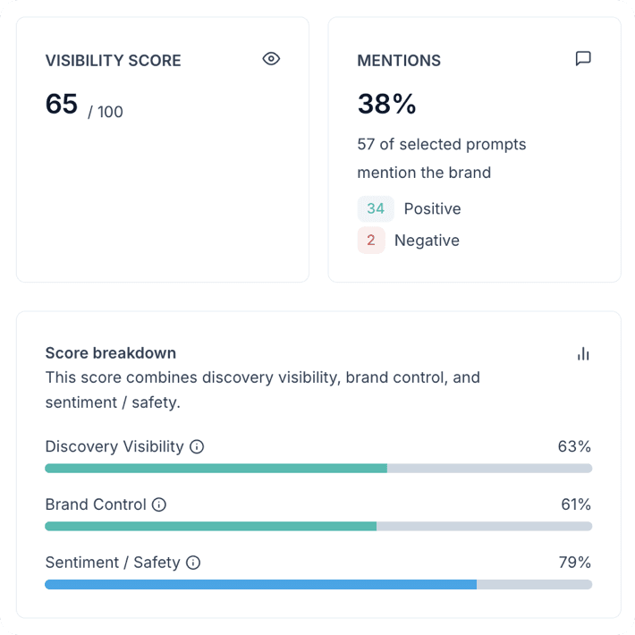 Your buyers already ask AI which brands to choose, which options to compare, and which companies to trust. AI search visibility is where SEO was fifteen years ago — the brands that act now will build an advantage that becomes hard to displace later. Most teams still have no clear view of where they stand, where competitors are gaining ground, or what to actually fix.