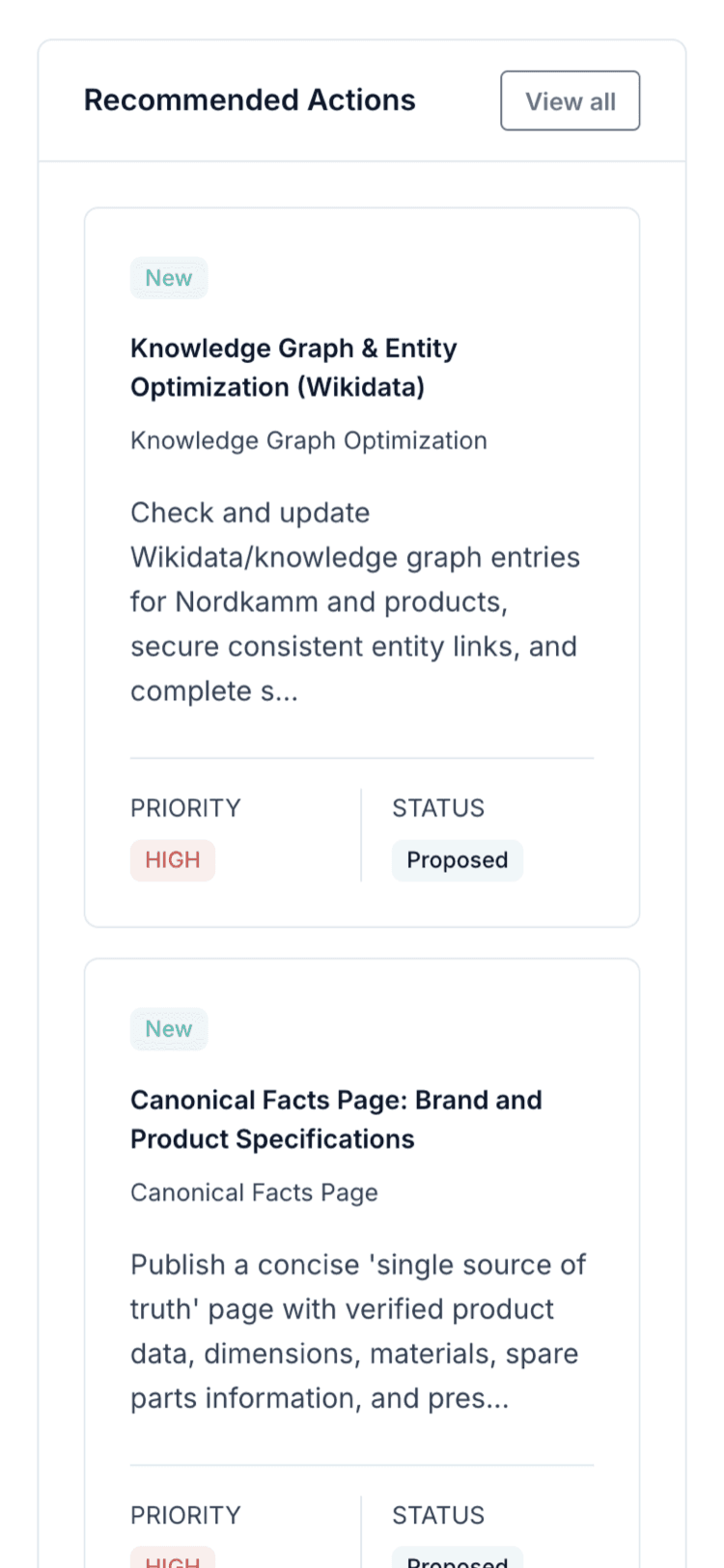 Get tailored recommendations and turn them into one-click executable next steps your team can apply immediately.